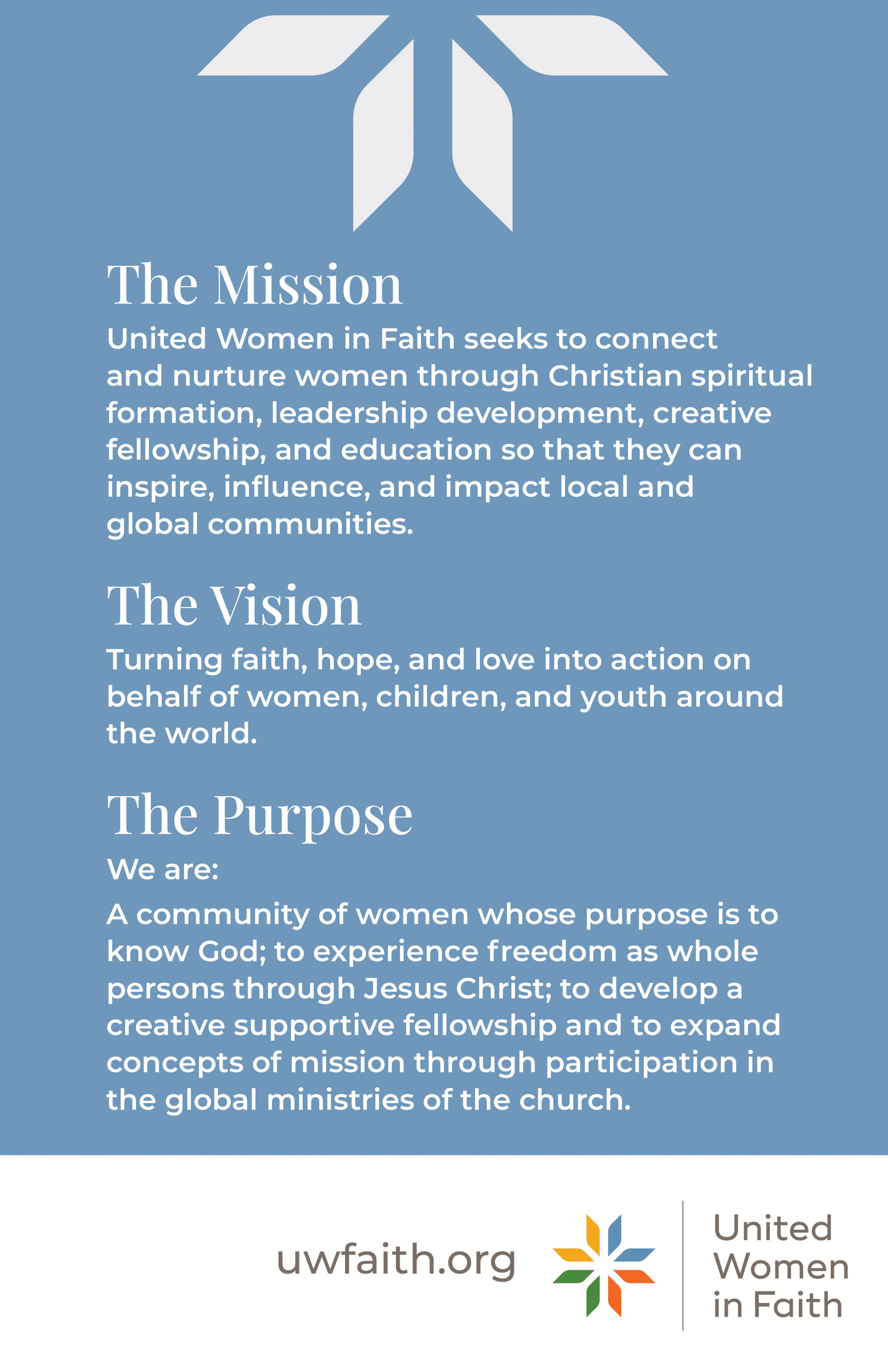 The United Women in Faith welcomes all women in the church to join them in their activities. For further information please contact one of the following: